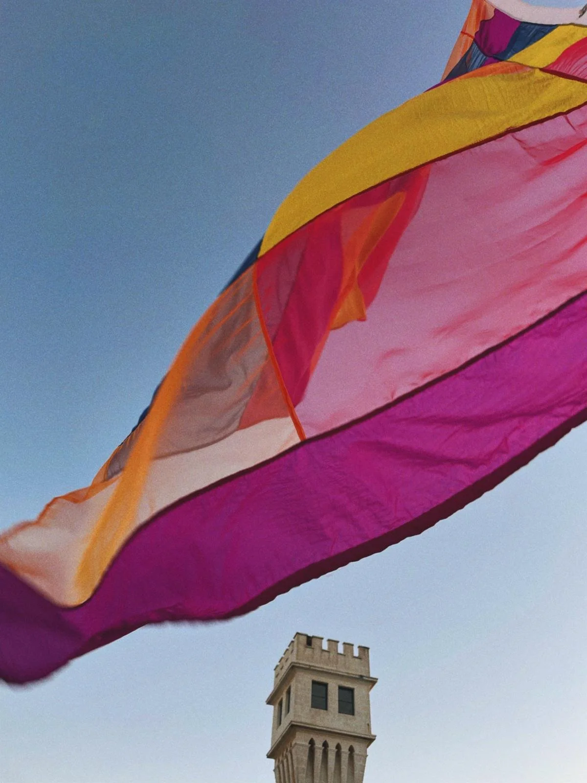 Made from fabrics and reflective materials, the flags aim to give this location a “skin” that it previously lacked—one that invites and welcomes anyone who passes by and wishes to stay.